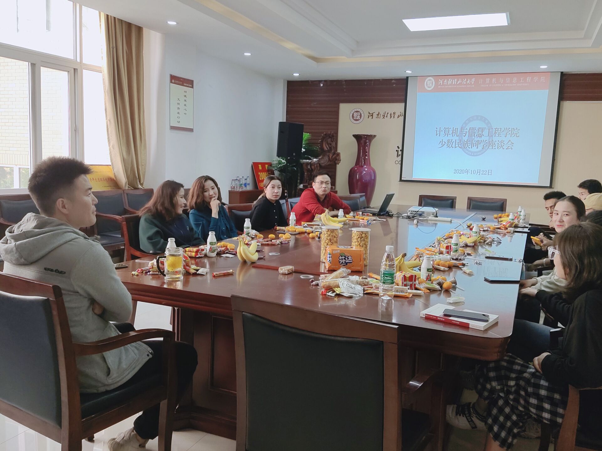 10月22日,我院于会议室314开展了少数民族同学座谈会,学院团委书记张淼、辅导员刘振出席,同时还邀请到学校两位少数民族辅导员一起参加了活动。