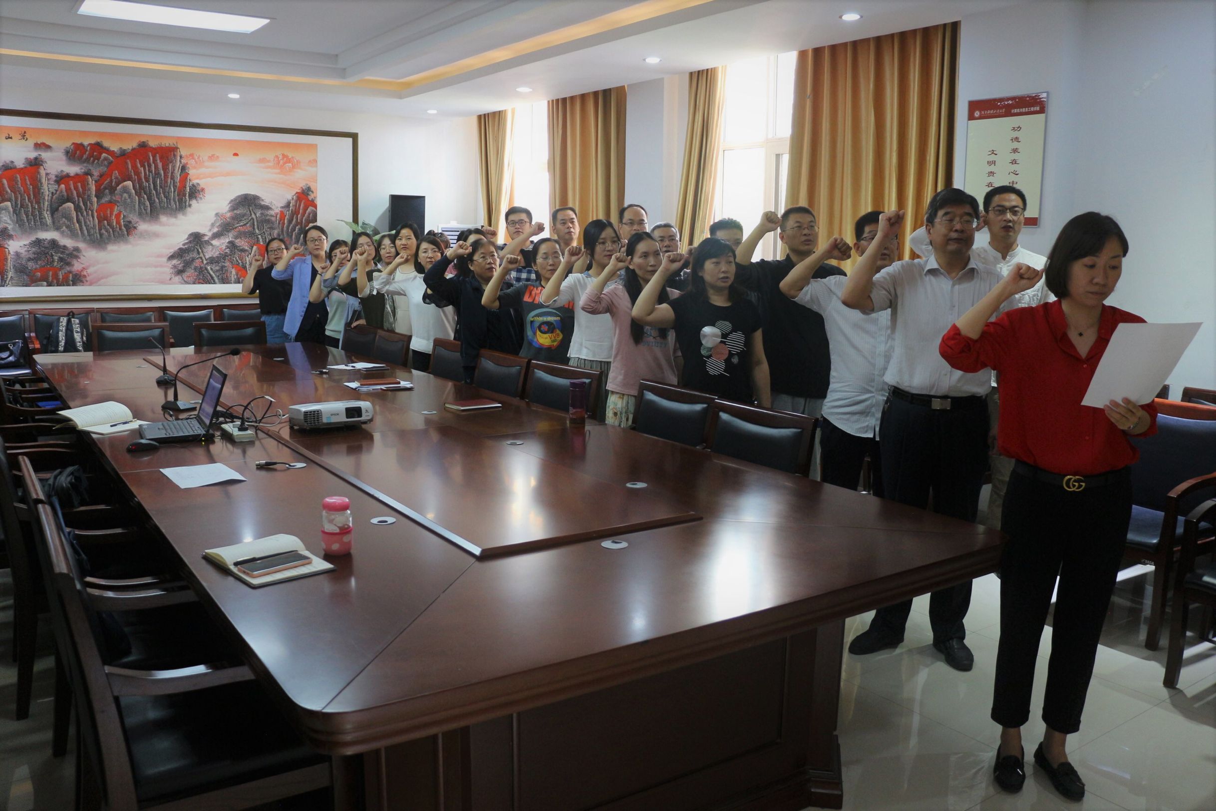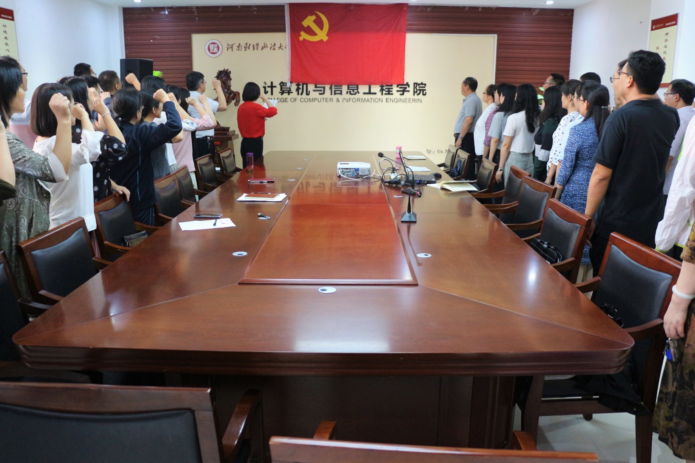 刘书记首先传达了杨宏志书记在校主题教育工作会议上的讲话精神,强调了本次主题教育意义深远、责任重大,并要求全体党员要深入学习贯彻习近平总书记重要讲话精神,充分认识开展“不忘初心、牢记使命”主题教育的重大意义,准确把握目标要求和重大举措,全力推动主题教育高质量开展,确保主题教育高质量、有特色、见成效。随后,全体党员在李书记的带领下重温了入党誓词,庄严宣誓,并观看了反映河南革命历史的专题片《初心永恒》,感悟了初心的赤诚滚烫、使命的千钧重量。