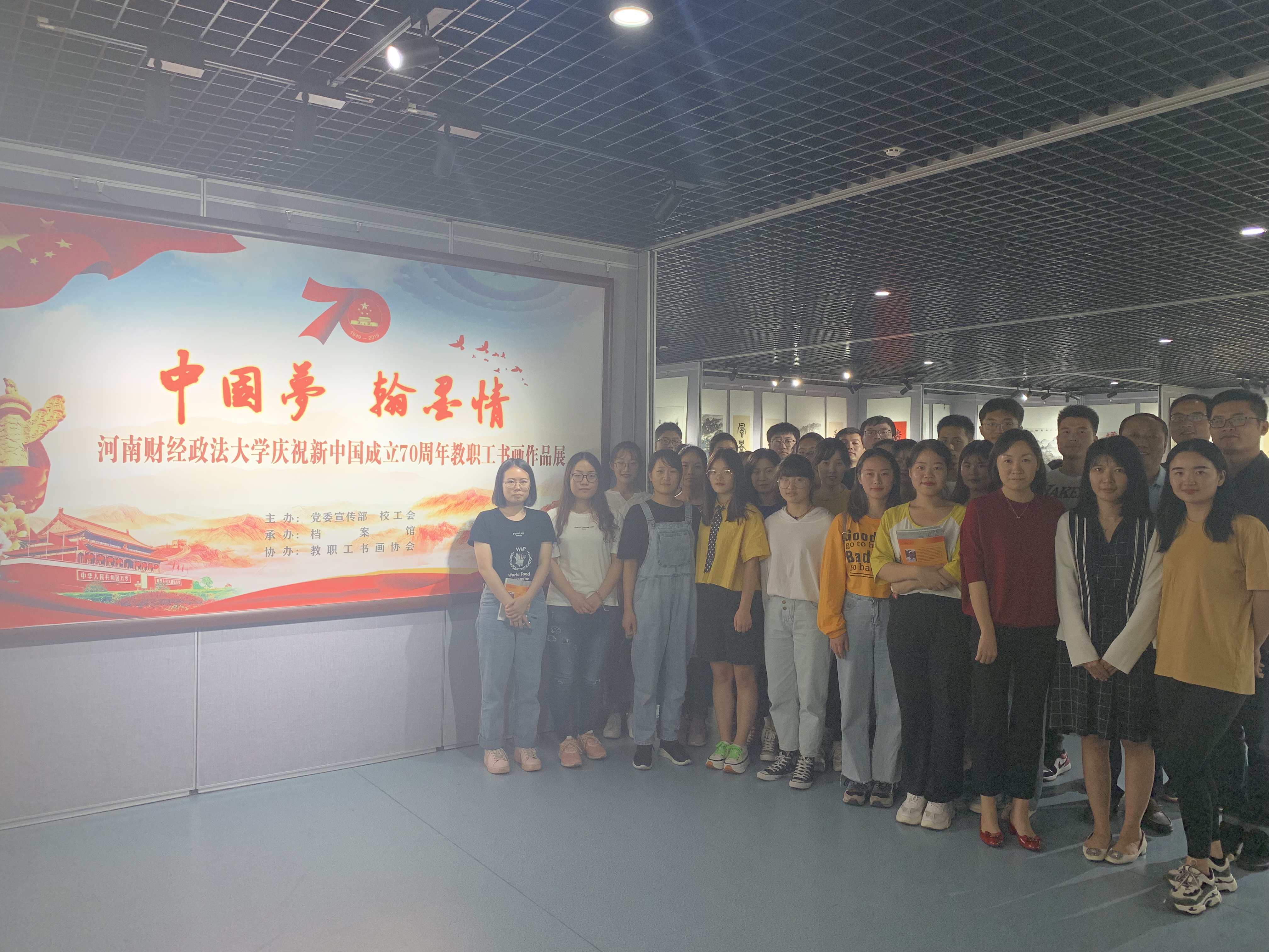 为深入推进“不忘初心,牢记使命”主题教育工作,使广大师生党员全面感受新中国70年的发展历程,继承和弘扬中华优秀传统文化,926日下午,我院组织师生党员参观了学校庆祝新中国成立70周年书画展。学院党委书记刘泮振、师生党员共计30余人参加了本次活动。