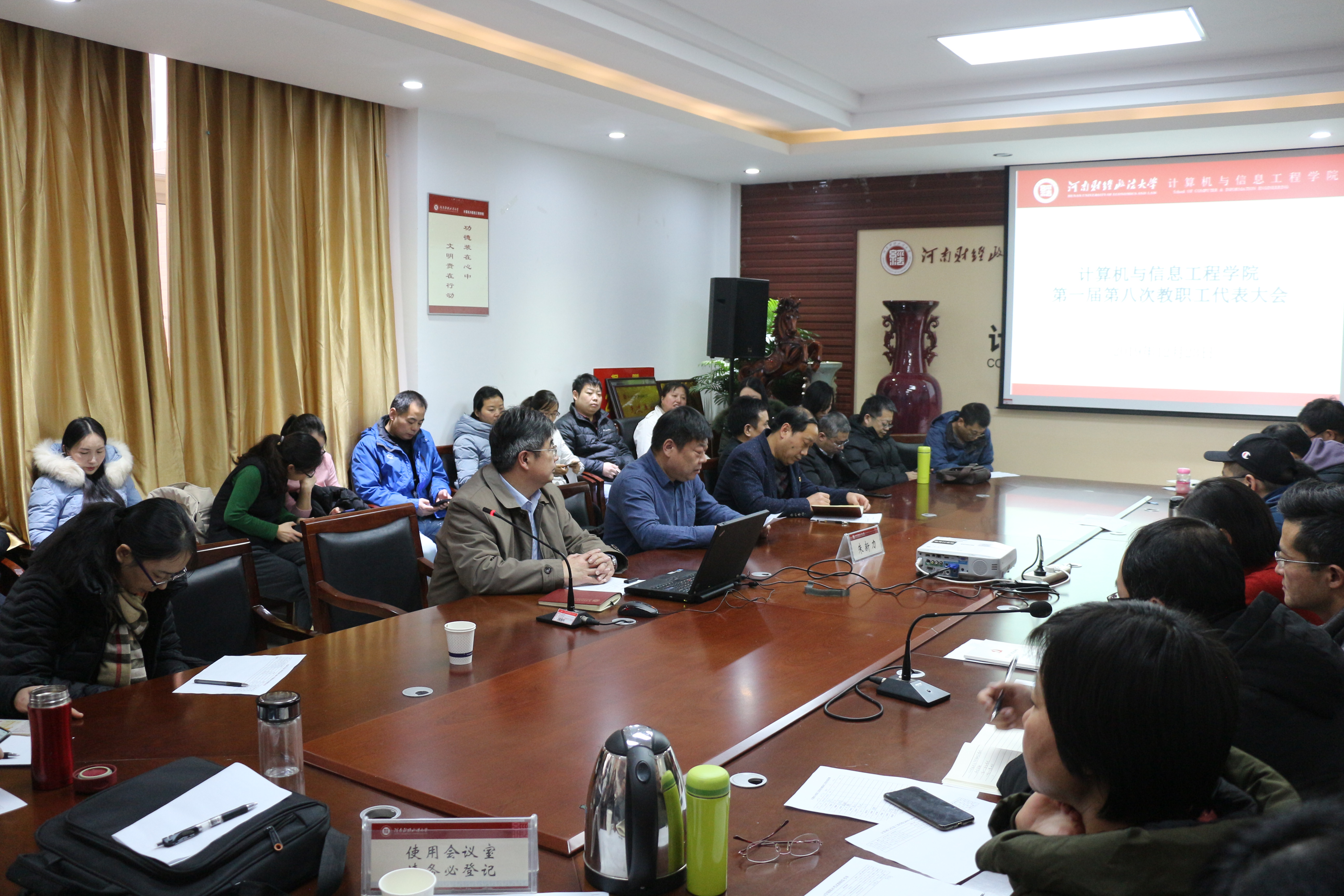 大会在庄严肃穆的国歌声中拉开帷幕,校工会副主席朱新力致词。他表示,2019年,我院党建工作水平不断提高,校企合作取得新拓展,科研成果颇丰,学科竞赛喜报频传,校园文化建设独具特色,这一切成绩的取得与我院党政班子的坚强领导和全院教职工的共同努力是分不开的。接着,院长肖会敏对2019年学院工作作了总结报告,他提到,2019年我院坚持以党的十九大精神和习近平新时代中国特色社会主义思想为指导,扎实开展党建工作,不断提升党建水平;坚持以人才培养为中心,切实做好教学科研工作;坚持以双创工作为抓手,全面加强学生管理和服务;丰富工会活动,营造和谐氛围;以上率下,加强党风廉政建设;提高责任意识,认真落实意识形态工作和统战工作。随后,学院工会主席秦军作了工会年度工作报告,并对工会2020年工作作出了期望和规划。最后,党委书记刘泮振对2019年度工会经费的使用情况进行了进一步说明,并表示在新的一年里,我院要进一步总结经验,创新工作思路和方法,努力再上新台阶,为学校的发展做出更大贡献。大会还审议通过了《绩效工作改革方案(试行)》以及各教研室代表提案等议题。
