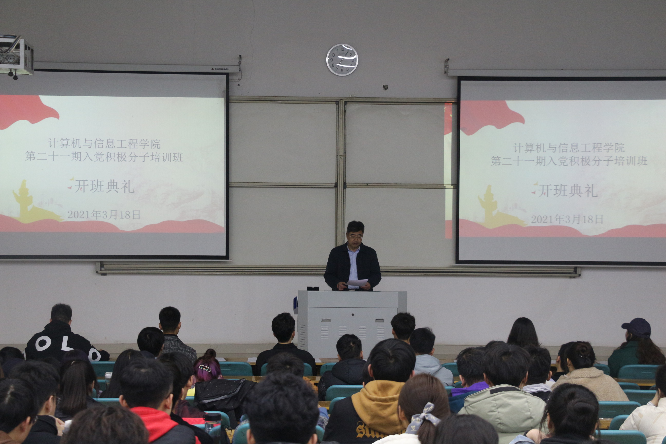 为响应上级党委的要求,培养积极分子政治觉悟,3月18日,我院于教科210举办第二十一期入党积极分子开班仪式暨第一讲,由刘振老师主持,院长肖会敏主讲,第二十一期全体入党积极分子参加。