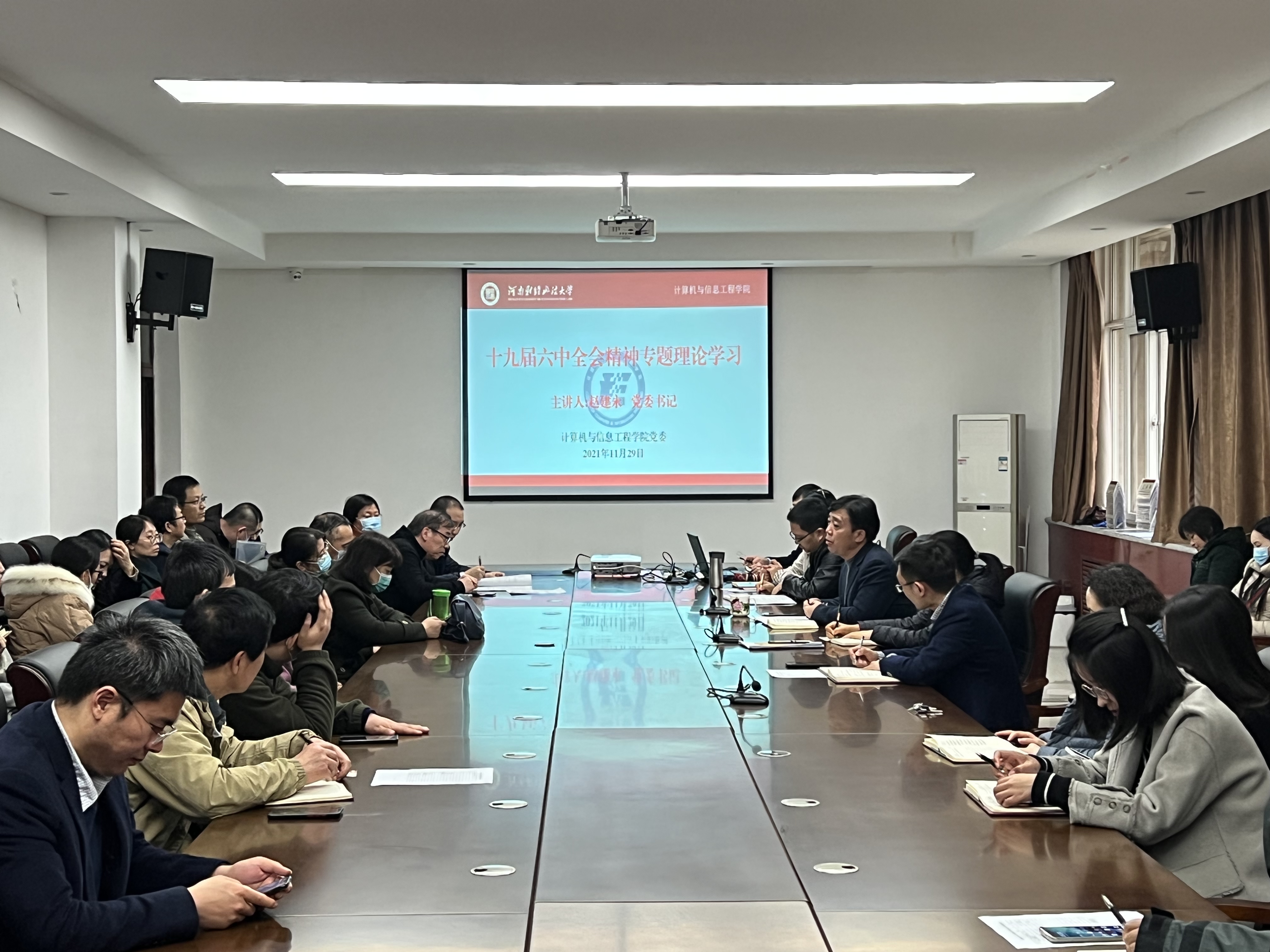 11月29日下午,学院党委在院办315会议室召开专题会议,学习党的十九届六中全会精神并进行研讨交流,会议由学院党委书记赵建永主持,学院全体教职工参加