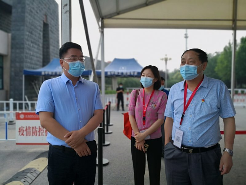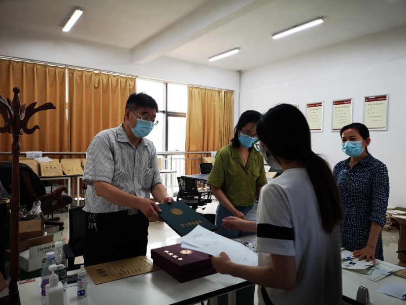 6月19日一早,我院党委书记刘泮振、副书记李祎就来到学校南门口,迎接许久未见的同学们。院长肖会敏在学院现场亲自督导毕业生离校手续办理工作。我院将办理离校手续通道设为单向流动,设有1.5米间隔地贴,减少学生聚集,并配有酒精、免洗手消毒液等供学生使用。期间,校党委副书记李慧军、学工部部长崔炜来到工作现场视察工作。因天气炎热,学院购置了20箱爱心矿泉水放在通道出口,供学生取用。