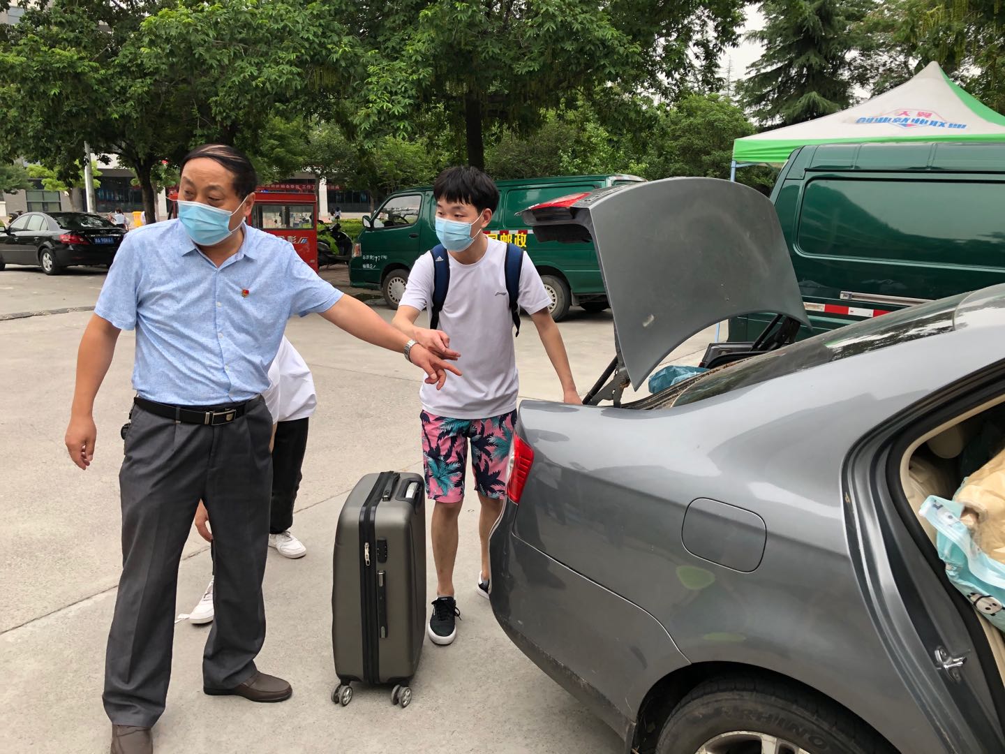 为减轻学校爱心大巴车运输压力,学院教职工党员自发组建“教工党员志愿服务队”,在党委书记刘泮振的亲自带领下,每日为学生义务运送行李,解决同学们大件行李搬运的难题。对于乘坐公共交通离校的同学们,党员志愿者们亲自开车送往高铁站等地,护送学生温暖离校,奔赴锦绣前程。“教工党员志愿服务队”两日共运送学生百余人次。院长肖会敏在学院亲自为同学们颁发毕业证学位证,与同学们合影留念,送上毕业祝福。19日晚,学院党委书记刘泮振,院长肖会敏,党委副书记李祎,副院长秦军和全体辅导员一同来到毕业生宿舍,与大家畅聊四年的时光,询问未来去向,并邀请同学们常回家看看。