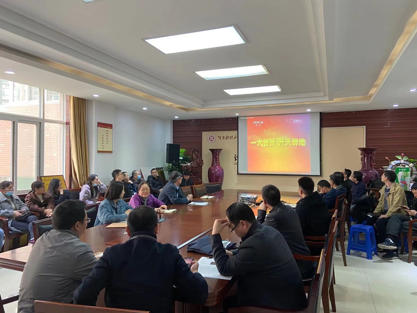 会上,院长肖会敏传达了杨宏志书记在学校党史学习教育动员大会上的讲话精神,并回顾了建党以来中国取得的巨大成就,进一步强调了党史学习教育的重大意义。随后,他号召学院全体师生积极行动起来,深入学习中国共产党百年峥嵘历史,并对学院的党史学习教育工作做出具体部署。在动员大会结束后,学院全体教职工共同观看党史学习教育视频《一大首聚 开天辟地》,并进行热烈讨论,本次动员大会和学习活动顺利结束。