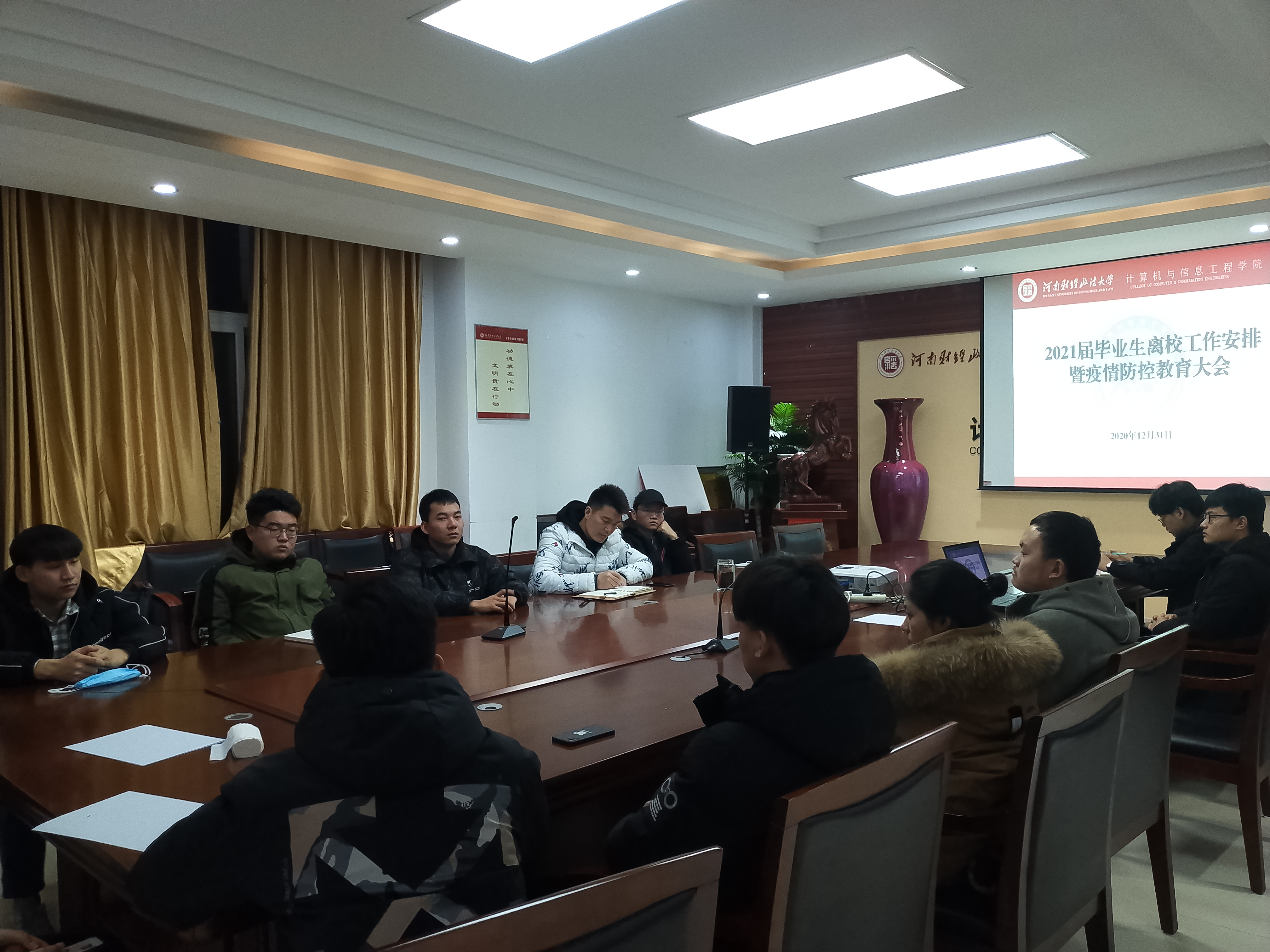 为确保我院疫情防控工作的正常开展,保障2021届毕业生寒假安全离校。12月31日下午,我院在314会议室召开了2021届毕业生离校工作安排暨疫情防控教育会。本次会议由我院辅导员刘振老师主持,2017级各班班长、团支书参与了本次会议。