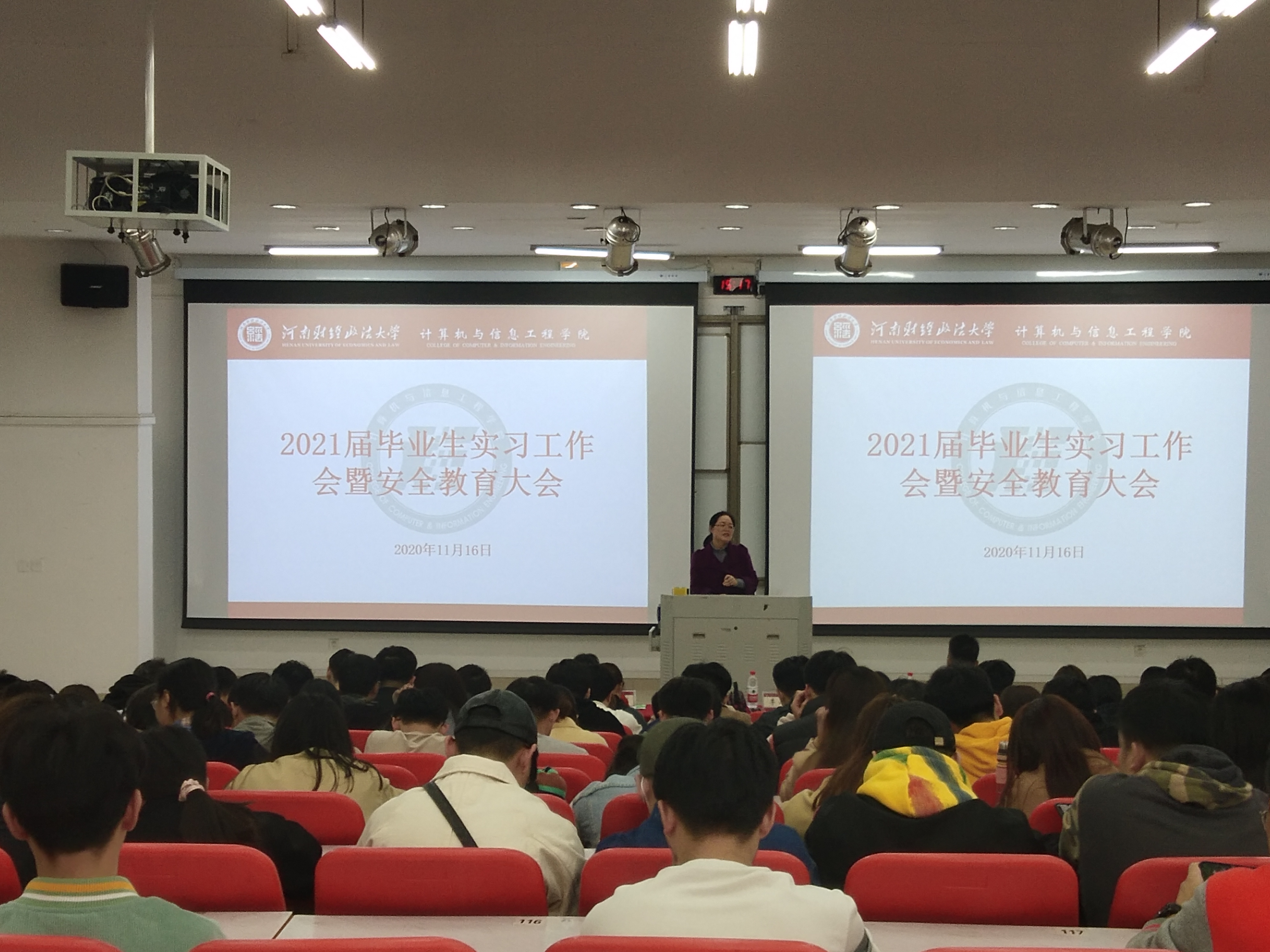 11月16日,williamhill英国在教二220召开了2021届毕业生实习工作会暨安全教育大会。学院副院长李淑红、辅导员刘振、教学办秦晓丽老师参加了会议。