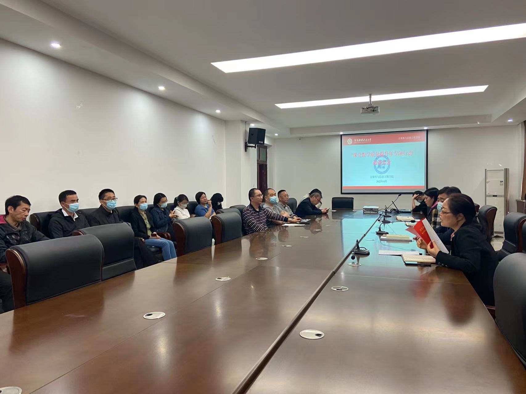 为贯彻落实省教育厅《河南省本科高校“课堂教学质量提升年专项行动”实施方案》精神和校党委“能力作风建设年”活动要求,4月25日下午,我院于315会议室召开“课堂教学质量提升年专项行动”动员大会,我院全体教职工参加此次会议,会议由院长李淑红主持召开。