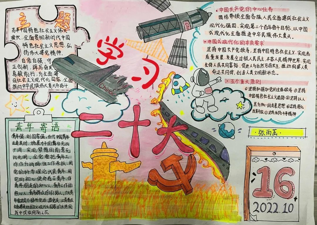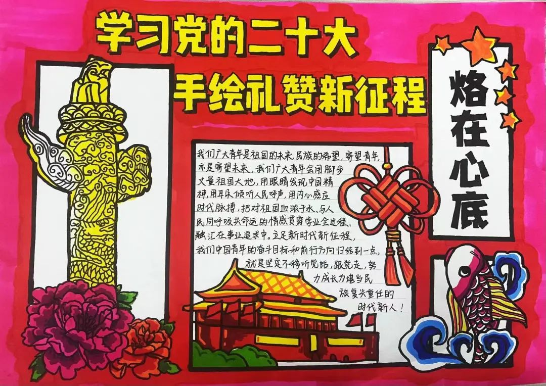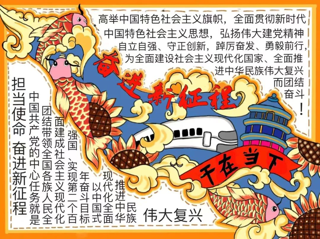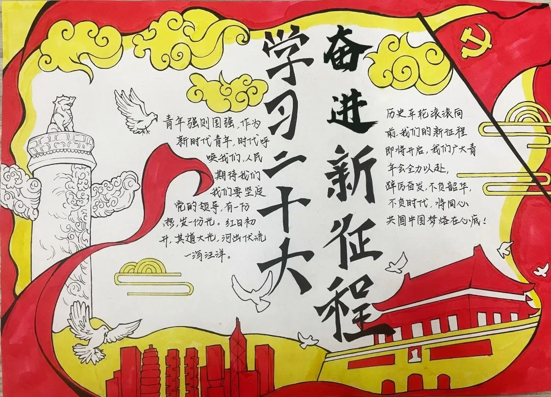 长期以来,党对广大青年寄予殷切期望,为深入学习贯彻党的二十大精神,我院开展“学习党的二十大,手绘礼赞新征程”系列活动。 在收听收看党的二十大开幕会后,我院学子深受鼓舞,倍感振奋,灵感涌现,一幅幅主题鲜明的作品,表达出他们对党和国家的感激之情和对美好未来的无限憧憬,抒发了他们赓续红色血脉,传承奋斗精神,无时无刻不在为实现中华民族伟大复兴的中国梦而准备着的坚定决心。