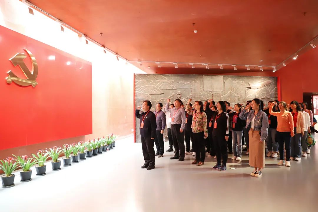 随后,学院党委一行来到中共洛阳组纪念馆,共同品读河南省第一个共产党组织“中共洛阳组”成立前后那段厚重的历史。面向鲜红的党旗,全体党员重温入党誓词。洪亮的声音伴随着庄严的宣誓,在展馆上空久久回荡。