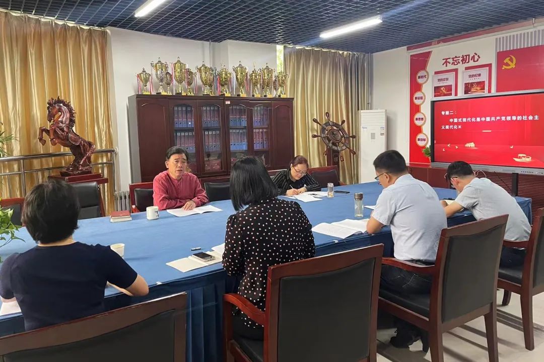全体与会人员在赵建永的带领下,分两个专题,认真学习了“习近平总书记在文化传承发展座谈会上的重要讲话”和《求是》杂志发表的习近平总书记重要文章《中国式现代化是中国共产党领导的社会主义现代化》。