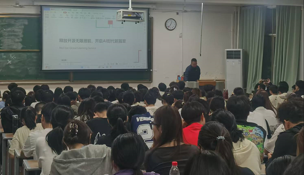 近日,软件学院在文北校区成功举办了两场主题报告会,为软件工程专业学生带来前沿技术与职业发展的新视角。4 月 22 日晚,举行了以“释放开源无限潜能,开启 AI 时代新篇章”为主题的报告会,红帽全球技术培训交付经理贺正刚与 NIIT 外籍教师 Garry 担任主讲。贺正刚深入解析开源技术在 AI 发展中的关键作用,结合实际案例,为学生指出了开源社区参与、项目实战与技术认证相结合的成长路径。Garry 则从人才发展角度,分享了在 AI 时代构建可持续竞争力的策略,强调持续学习力的重要性。
