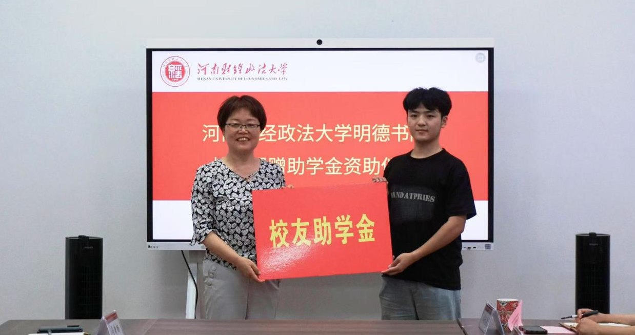 在与会师生的共同见证下,李淑红作为捐赠校友代表,与受助学生代表完成了捐赠物资交接。明德书院王廷伟书记代表书院向捐助人颁发了捐赠证书。