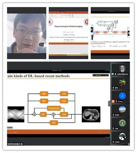 活动伊始,李淑红院长首先介绍了张意教授在医学图像领域的工作经历和取得的丰硕成果。张意教授曾在美国伦斯勒理工学院生物医学工程系做博士后,目前已在IEEE TMI、IEEE TCI、IEEE TMM、MedIA等权威国际学术期刊发表论文70余篇,多次特邀在本领域的重要会议IEEE NSS/MIC, IEEE ISBI, Fully 3D,SPIE Optics Engineering + Applications上作报告。作为负责人主持国家重点研发计划课题、国家自然科学基金,四川省杰出青年科技人才项目等多个国家级、省部级项目。曾获2020年吴文俊人工智能科技进步奖二等奖、2020年中国体视学会青年科技奖、四川省高层次人才计划项目、2021年四川省教学成果奖一等奖。下午14时,张意教授结合医学成像领域中应用理论研究和技术推广过程中存在的泛化性和可解释性等一系列问题,作了精彩的学术报告