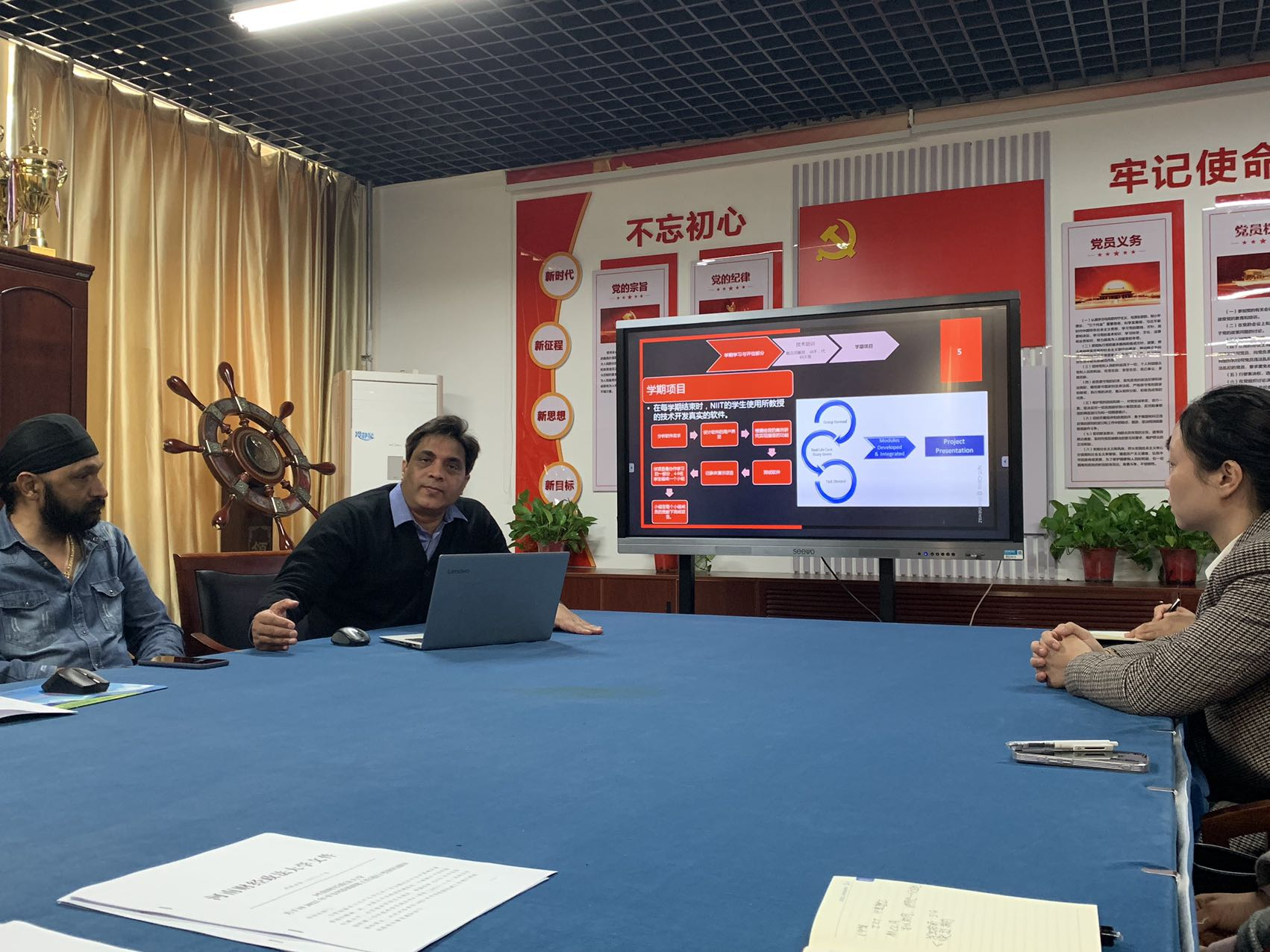 会议开始,张墨华副院长就我院与NIIT的合作情况做了简单介绍:为了主动适应国家和我省现代服务业,深化地方高校软件类专业人才校企合作培养模式改革,加快培养国际化应用型软件人才,提高人才培养质量,增强学生就业创业能力,为区域软件产业发展提供人才与智力支撑,从2019年开始,我院开始与印度国家信息技术学院联合培养软件工程(DNIIT国际认证方向)专业人才。目前,学院已经招收学生980余人,与印方积极开展校企合作,构建国际化应用型人才培养体系,不断优化教学内容,进行国际化应用型人才培养模式的改革与创新。