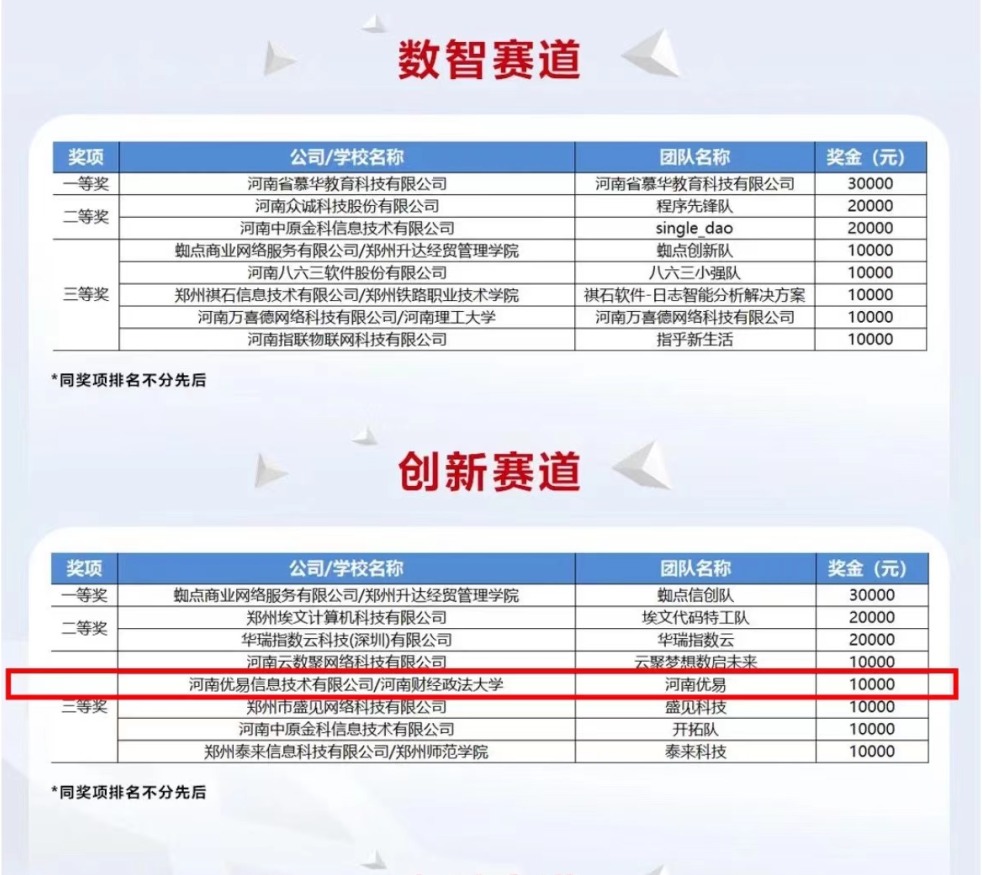 近日,由河南省教育厅、黄河科技集团、华为技术有限公司联合主办,郑州中原科技城管委会、中原鲲鹏生态创新中心共同承办的2023黄河鲲鹏开发者大赛河南区域决赛圆满落幕。我院教师冯新扬带领“河南优易”团队在本次大赛创新赛道中斩获三等奖。