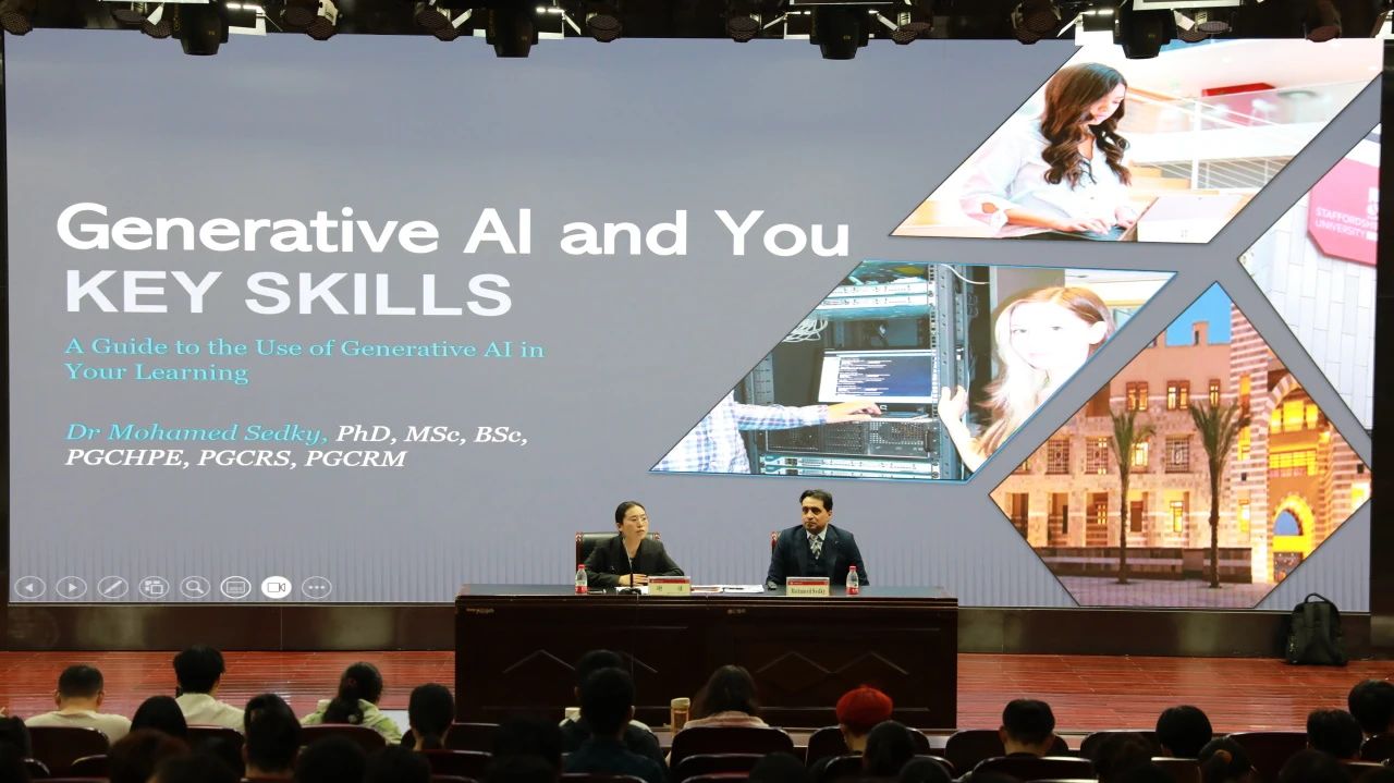 Mohamed Sedky教授以“如何利用人工智能进行自主学习”为题,围绕什么是人工智能、在学习过程中使用生成式人工智能是否合适、生成式人工智能对我们的关键技能有哪些提升等话题进行讲述。同时,他结合自己的学术背景和实践经验,介绍了ChatGPT和其他人工智能工具的已知局限性,告诉我们如何批判地看待生成式人工智能输出的结果。