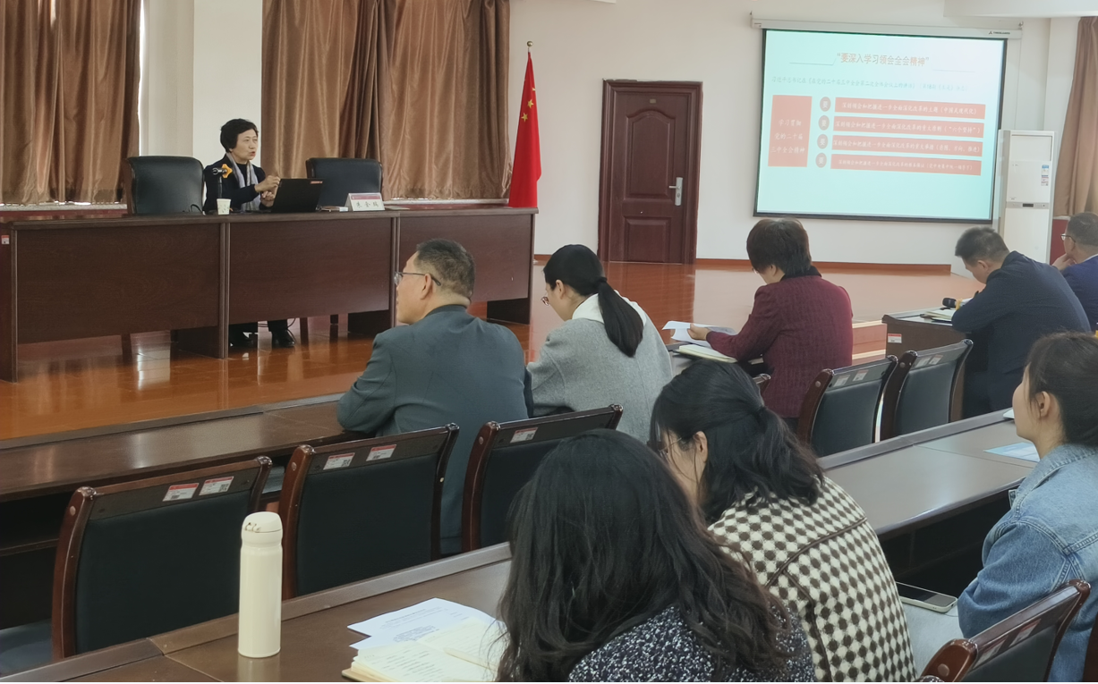 11月4日,学习贯彻党的二十届三中全会精神省委教育工委宣讲团成员、英国威廉集团副校长朱金瑞教授应邀到我院宣讲党的二十届三中全会精神,学院全体教师参加学习,宣讲会由党委书记蔡伟峰主持。