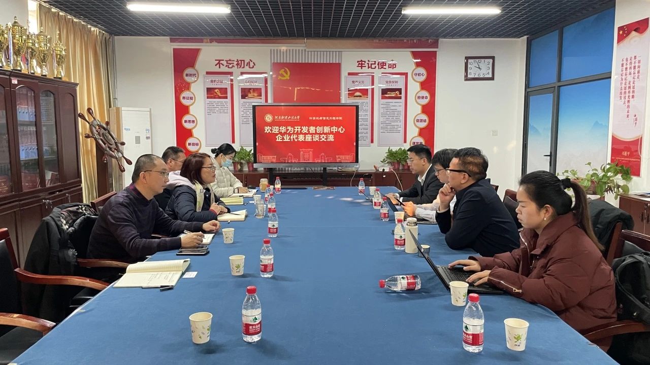 首先,李淑红介绍了学院在教学科研和学生培养方面的基本情况。随后,汪盛、杨亮分别介绍了华为云(郑州高新区)开发者创新中心的建设情况。最后,双方就校企合作、产教融合等共同关注的话题进行了充分交流。通过研讨交流,双方表示今后会在科研成果转化、信创人才培训、学生实习实训等方面进一步加深合作。