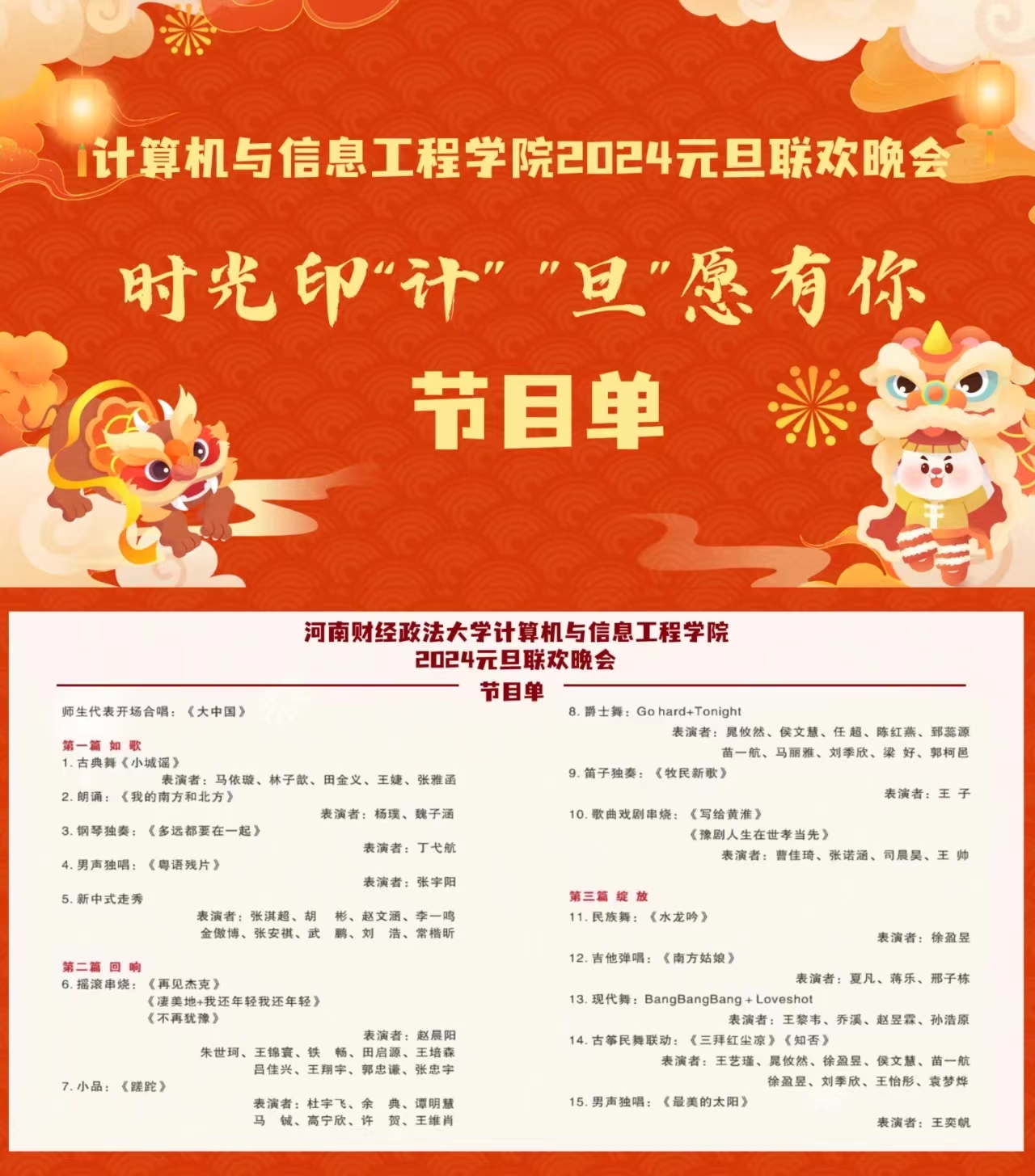 12月20日,我院“时光印‘计’,‘旦’愿有你”2024元旦联欢晚会在教1-219拉开了帷幕。院长李淑红,兄弟院系辅导员代表、学院全体辅导员以及400余名学生代表共同观看了本次晚会。