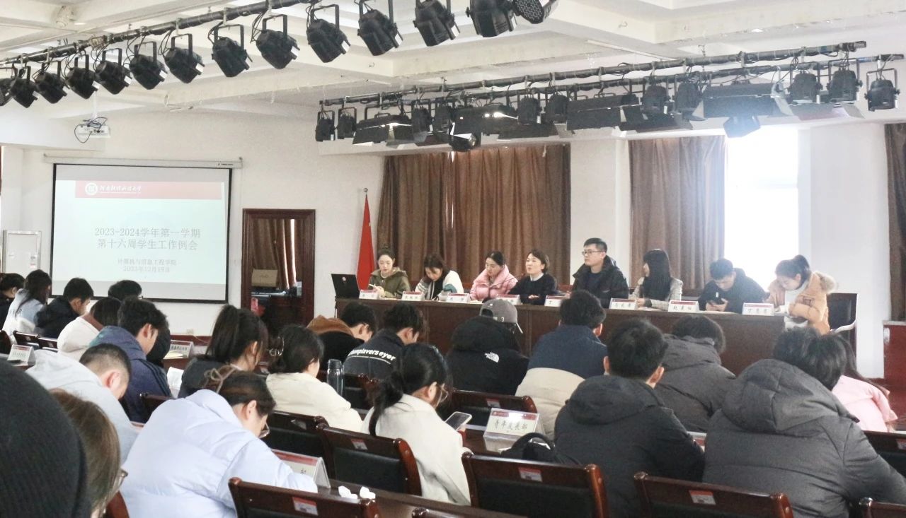 12月19日中午,我院召开2023-2024学年第一学期第十六周学生工作例会,会议在教职工活动中心409会议室举行。学院全体专职辅导员、团委学生会各部门负责学生、各年级班委代表参加了此次会议,会议由团委副书记丁栋主持。