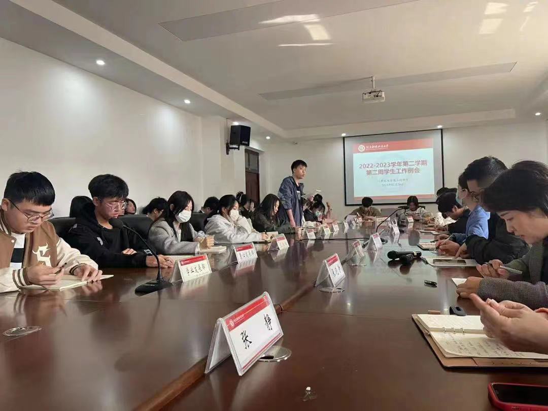 2月28日中午,我院2022-2023学年第二学期第二周学生工作例会在学院315会议室举行。学院团委书记张晓静、团委副书记丁栋、全体辅导员、团委学生会相关部门负责学生和部分年级班委代表参加了此次会议,会议由丁栋主持。