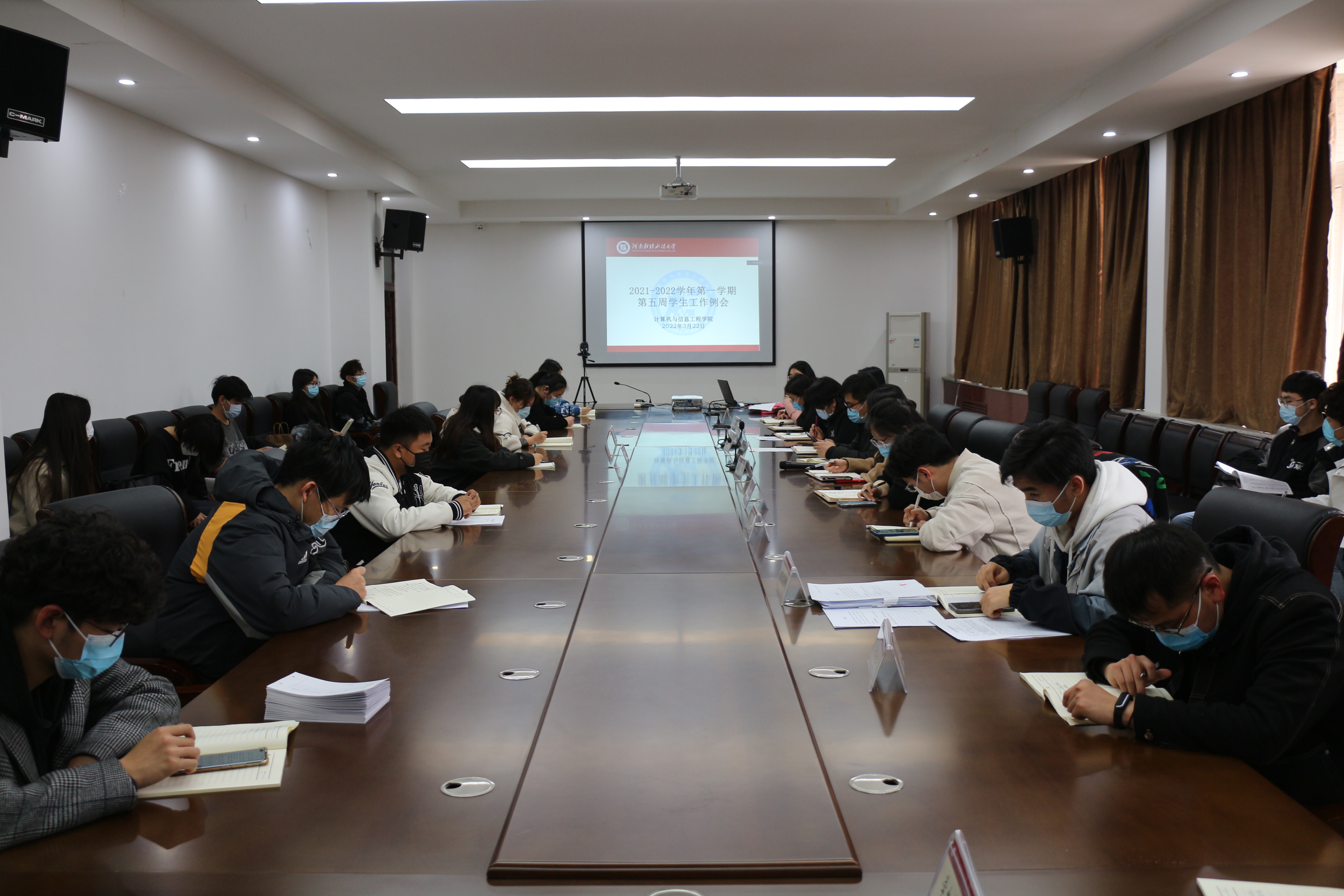 图为我院召开第五周学生工作例会