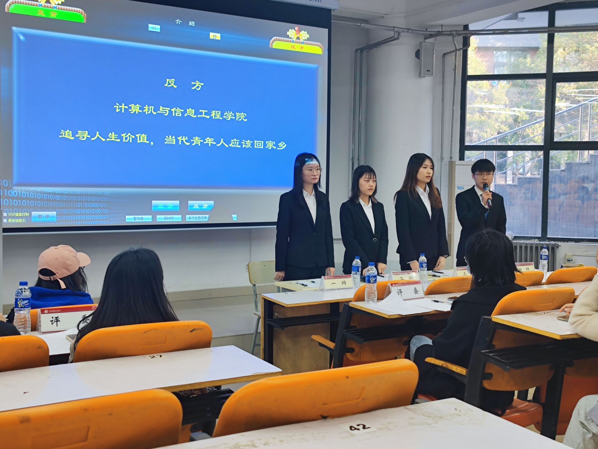 赛时,我院第一场战统计学院,我院学子持正方辩题“追寻人生价值,当代青年人应该去远方”,以3:0的优异成绩碾压对手,第二场战民商学院又持反方辩题“追寻人生价值,当代青年人应该回家乡”,以2:1的成绩再次战胜对手。在这短短的两个小时的比赛中,我院学子以清晰的逻辑,犀利的问答,丰富的储备成功战胜强劲的对手。我院学子面对对手不卑不亢,态度从容,精准找出对手逻辑漏洞,令对手退避三分,少年有英气,虎视何雄哉。