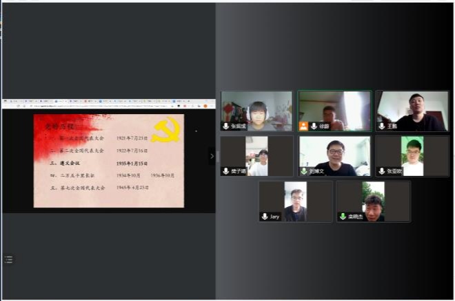 早上8点半到11点,实践团团员们自己完成今日的内容学习,对遵义会议有了更深刻的了解。团员们对遵义会议的党的历史有着不同的心得,之后,团员们在QQ群里回复收完成以及心得。下午两点半,实践团团长准时组织腾讯会议,共享有关今天早上内容的ppt,遵义会议当时的历史背景,是长征,在领导人出发错误的时候,党在关键时刻,拨乱反正,确定了毛泽东作为党的领导人,团员们一起学习,并且各个团员讨论今日的心得。会议总共进行了两个小时,前一个小时半学习讨论,最后半个小时讨论自己知道的红色地点以及计划明天的学习任务。至此,今日的党史学习正式圆满结束。