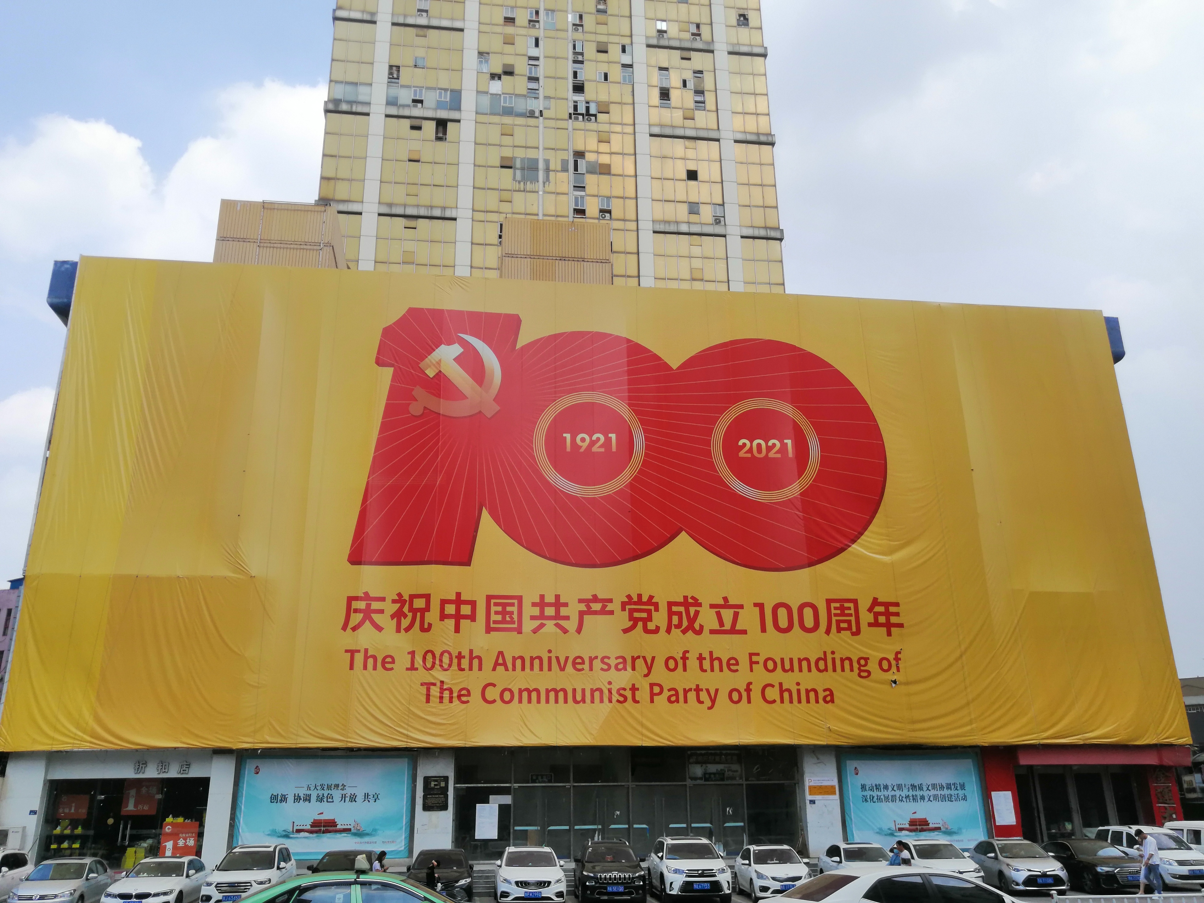 在从图书馆返程的路上,实践队员们看到很多大楼上都挂上了庆祝党成立100周年的标语,它们在蓝天的映射下更加靓丽,不禁自豪于我们的祖国。学习党史就是要更加深刻地了解党,同时继承和发扬革命先辈的奋斗精神,这是这一代青年被这个时代赋予的历史使命。
