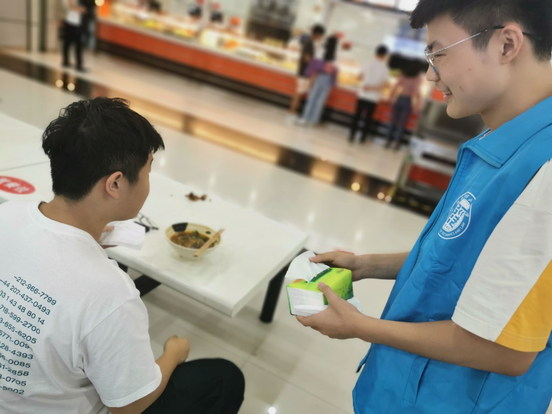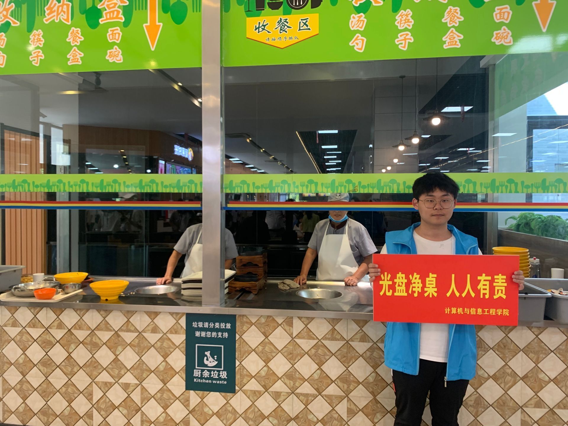 近期,习近平总书记对制止餐饮浪费行为作出重要指示。他指出,餐饮浪费现象,触目惊心、令人痛心!“浪费之风务必狠刹“,每位公民都应当对粮食安全保有危机意识。为贯彻习近平新时代中国特色社会主义思想,引导我校学生养成节俭意识,9月18日,计算机与信息工程青年志愿者协会于校园餐厅开展了“光盘净桌”志愿活动。