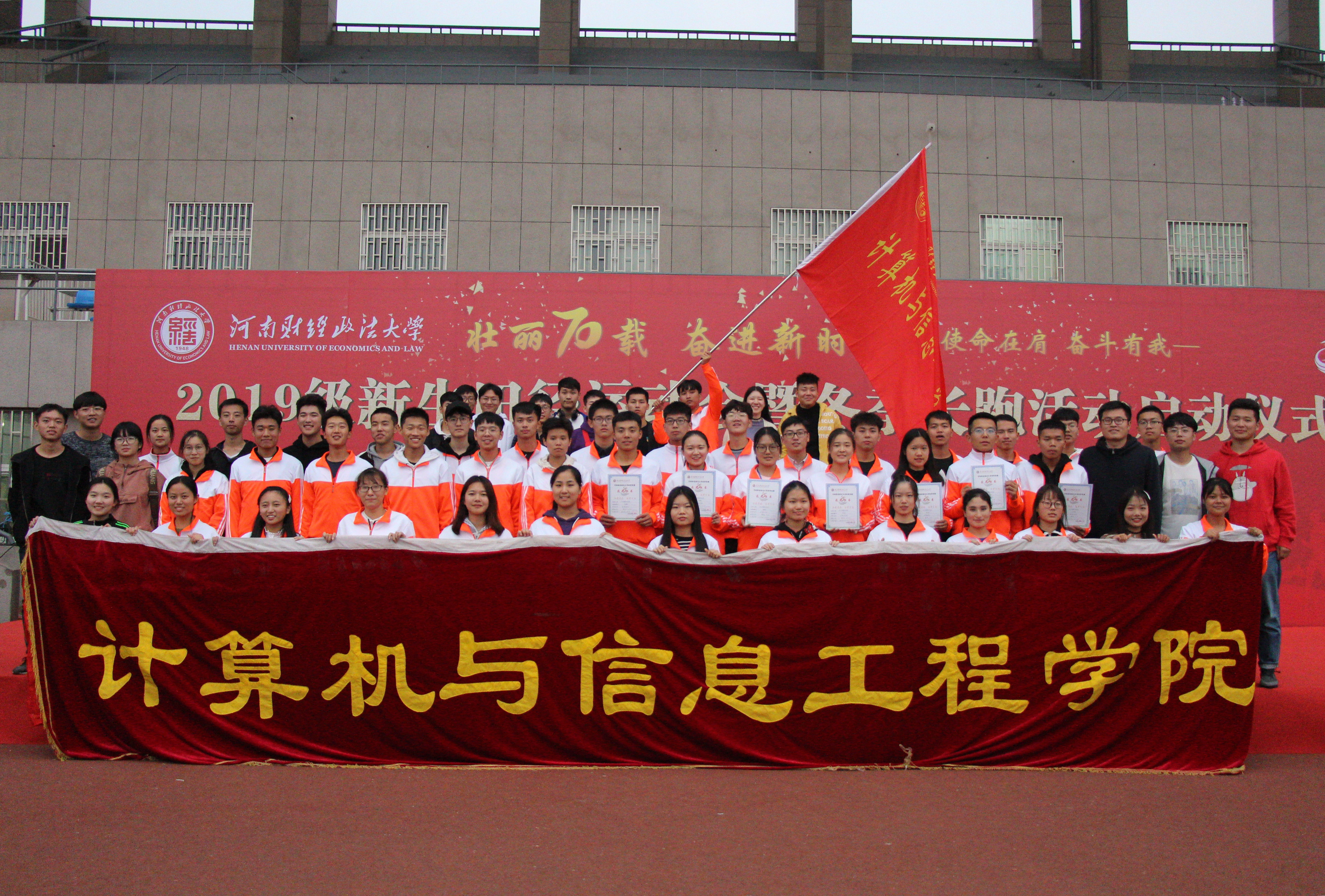 为全面提升我校学生体育素质和综合能力,培养学生团结合作,坚持不懈的体育竞技精神,11月9日,我校于东操场隆重举行了2019级新生田径运动会。