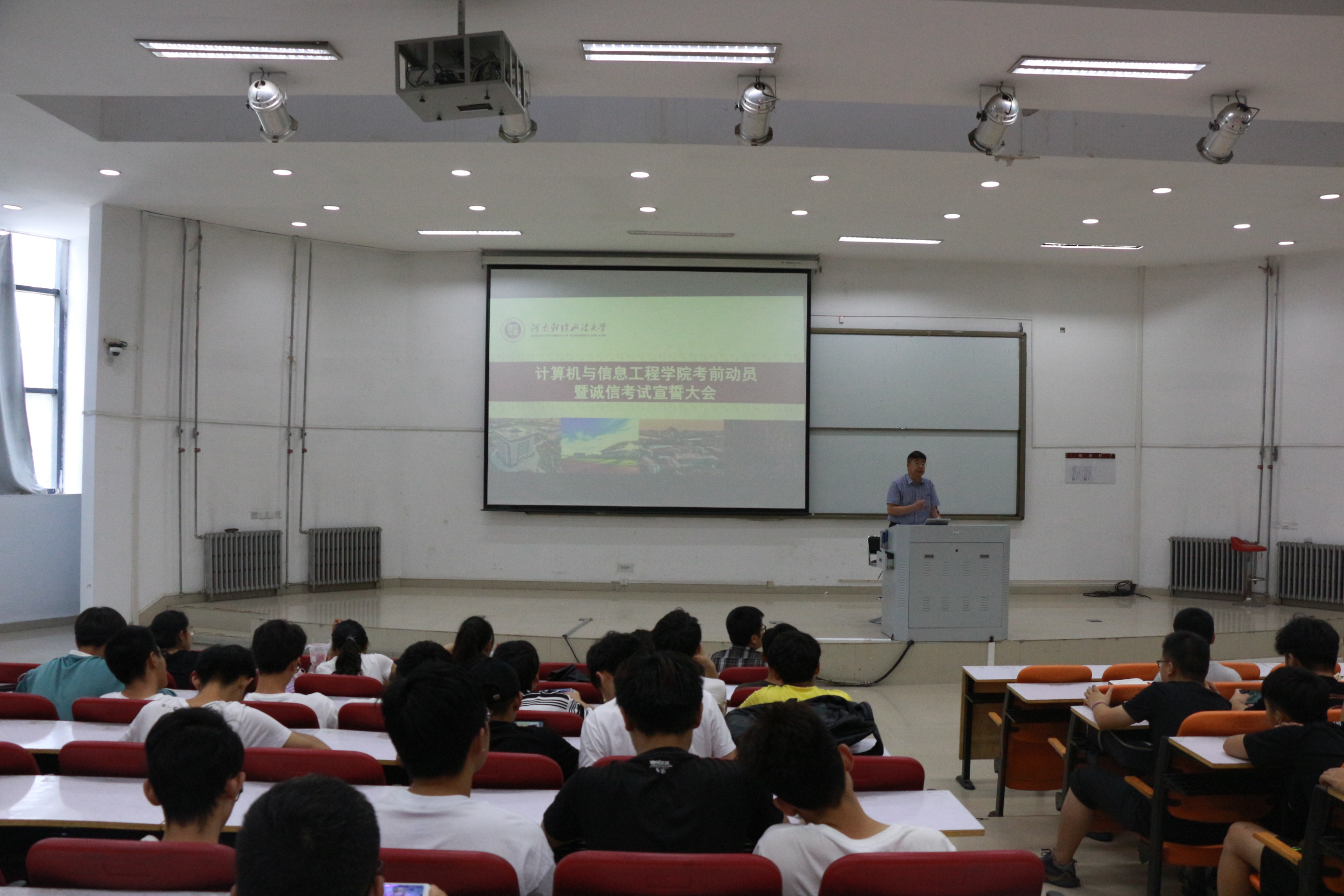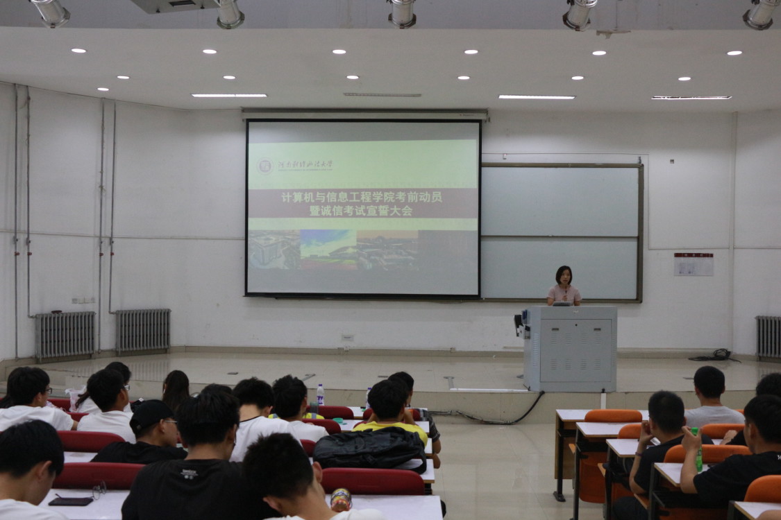 临近期末考试,为了加强学风建设,严肃学院考风考纪,6月26日,我院于教二219举行了考前动员暨诚信考试宣誓大会。此次大会由学院团委书记郑卫丽主持,我院18级全体学生及16、17级全体学生干部参加了这次会议。