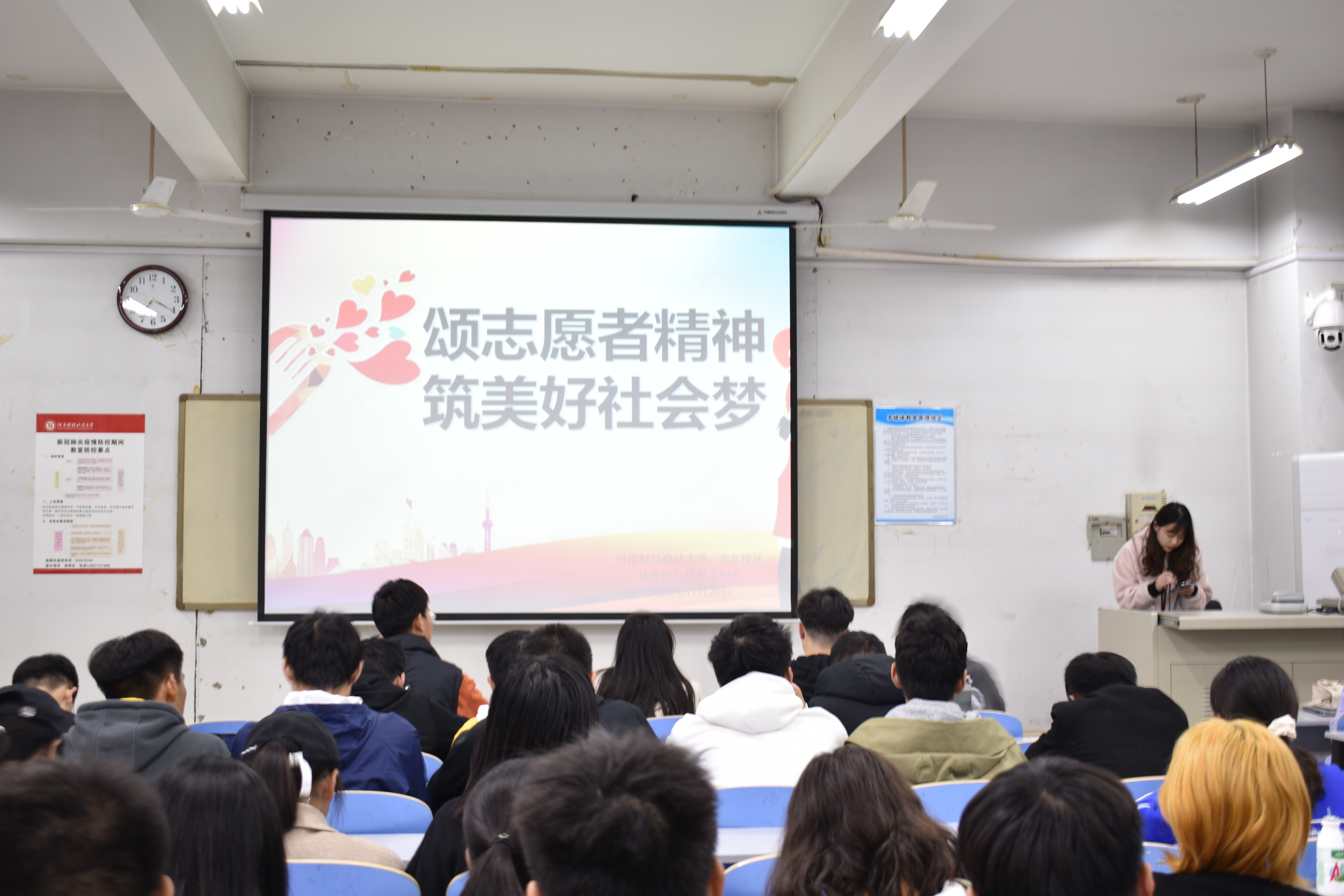 11月20日晚,为了帮助大一同学理解“奉献,友爱,互助,进步”的志愿者精神,懂得志愿者精神的内涵。我院青年志愿者协会于文北校区十号楼202教室举办了“颂志愿者精神,筑美好社会梦”主题活动。青年志愿者协会会长杨洋、副会长范燕敏、副部长刘畅,年级长刘泽坤出席了本次活动。