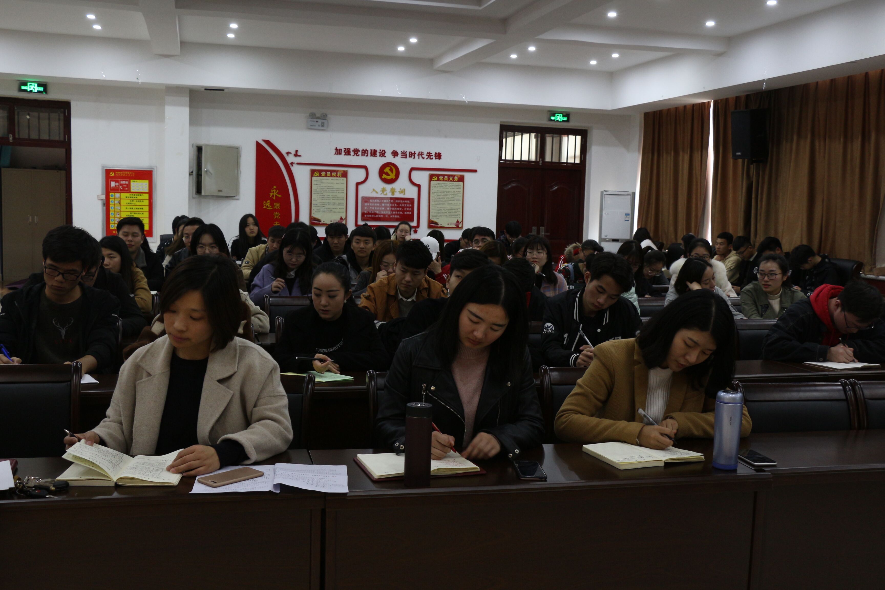 首先,杨睿书记对我院2018年所获荣誉进行了肯定,也就考研率低、不及格率高和基础性工作不够细致等方面指出了不足。之后对2019年学院在思想政治教育、学风建设、学生管理与服务、辅导员工作和学术研究方面提出了新的工作要求。