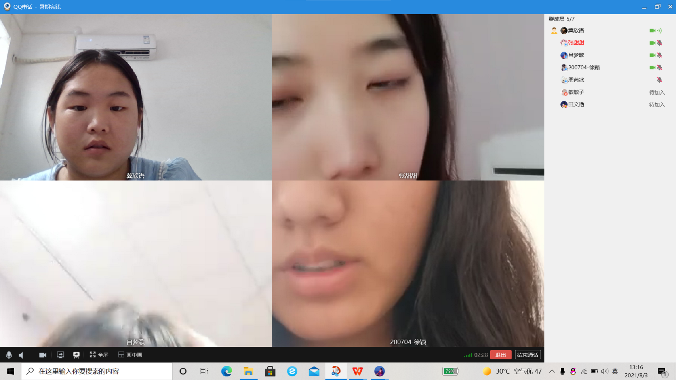我们实践团与8月3日开了线上视频会议,观看八佰电影,学习革命精神。中午十一点,我们实践团提前开始讨论今日学习主题并做好准备工作。下午一点左右,我们观看完了八佰电影,我们小组长引领我们讨论其体现的革命精神以及我们需要学习的地方。
