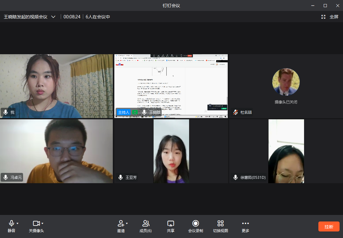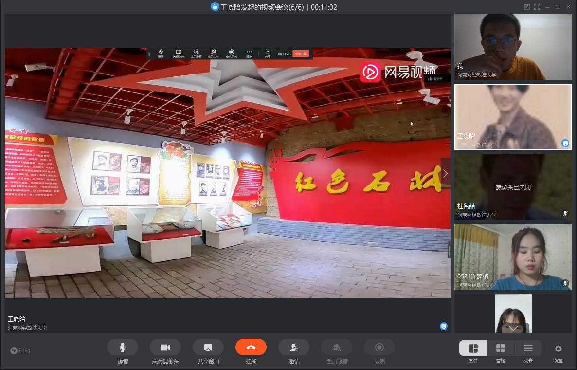 由于当前疫情形势较为严峻,以及鹤壁市多地正处于防汛时期,原计划参观的石林乡景区因以上原因而暂停对外开放,故英国威廉集团赴河南鹤壁党史学习实践暑期实践团于8月1日上午决定采取线上学习的方式来进行本次实践活动。晚上九点三十分,在提前准备好学习材料的前提下,小组成员陆续加入了钉钉会议。