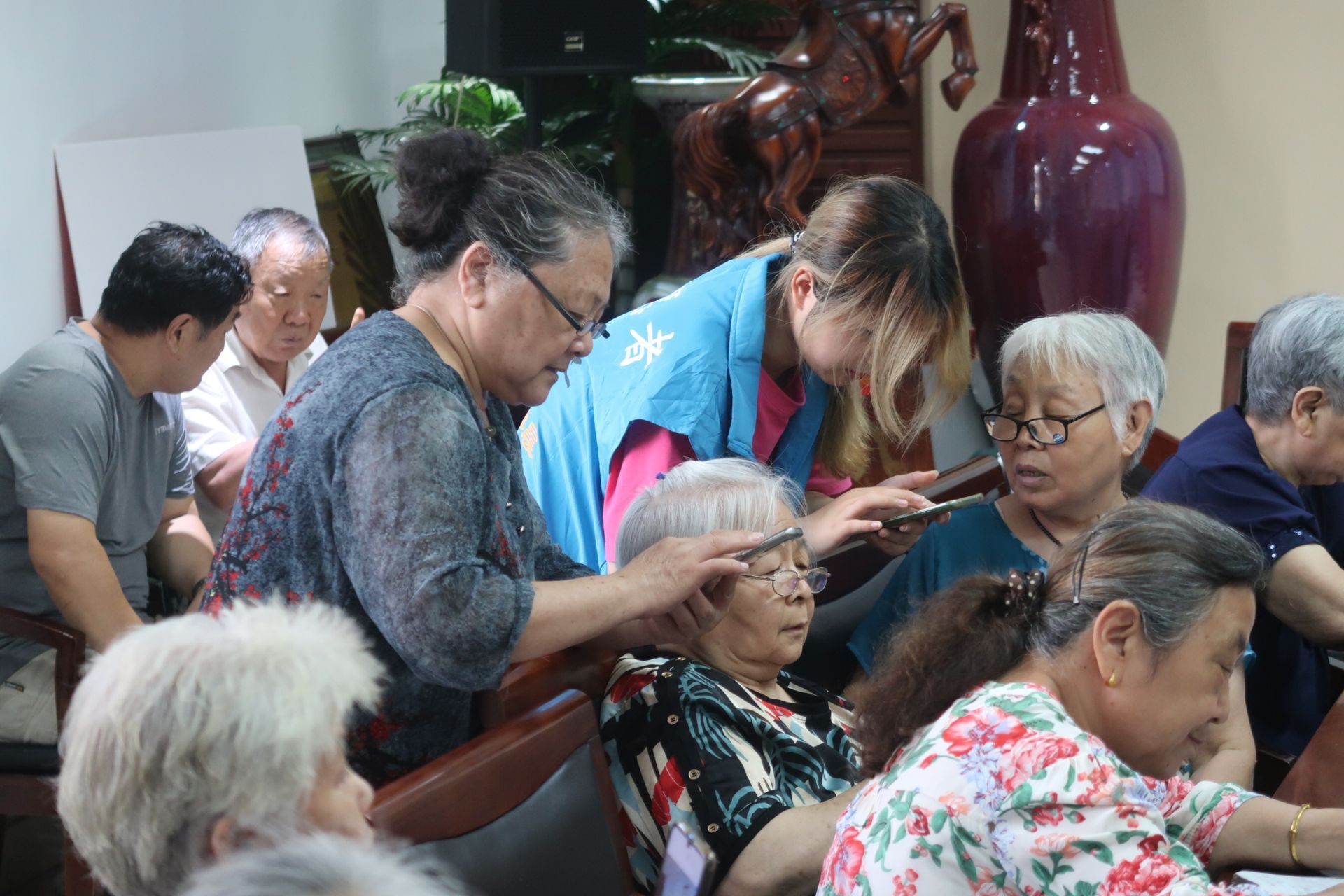 在主要课程结束后,志愿者们与老人们积极交流,老人们也表达出现在的手机能极大的丰富她们的日常生活,使用美颜修图软件也能很好地展示自己的创造性,对今日教学活动相当满意。志愿者们在活动中也和老人们相互学习,共同分享创意,收获喜悦。