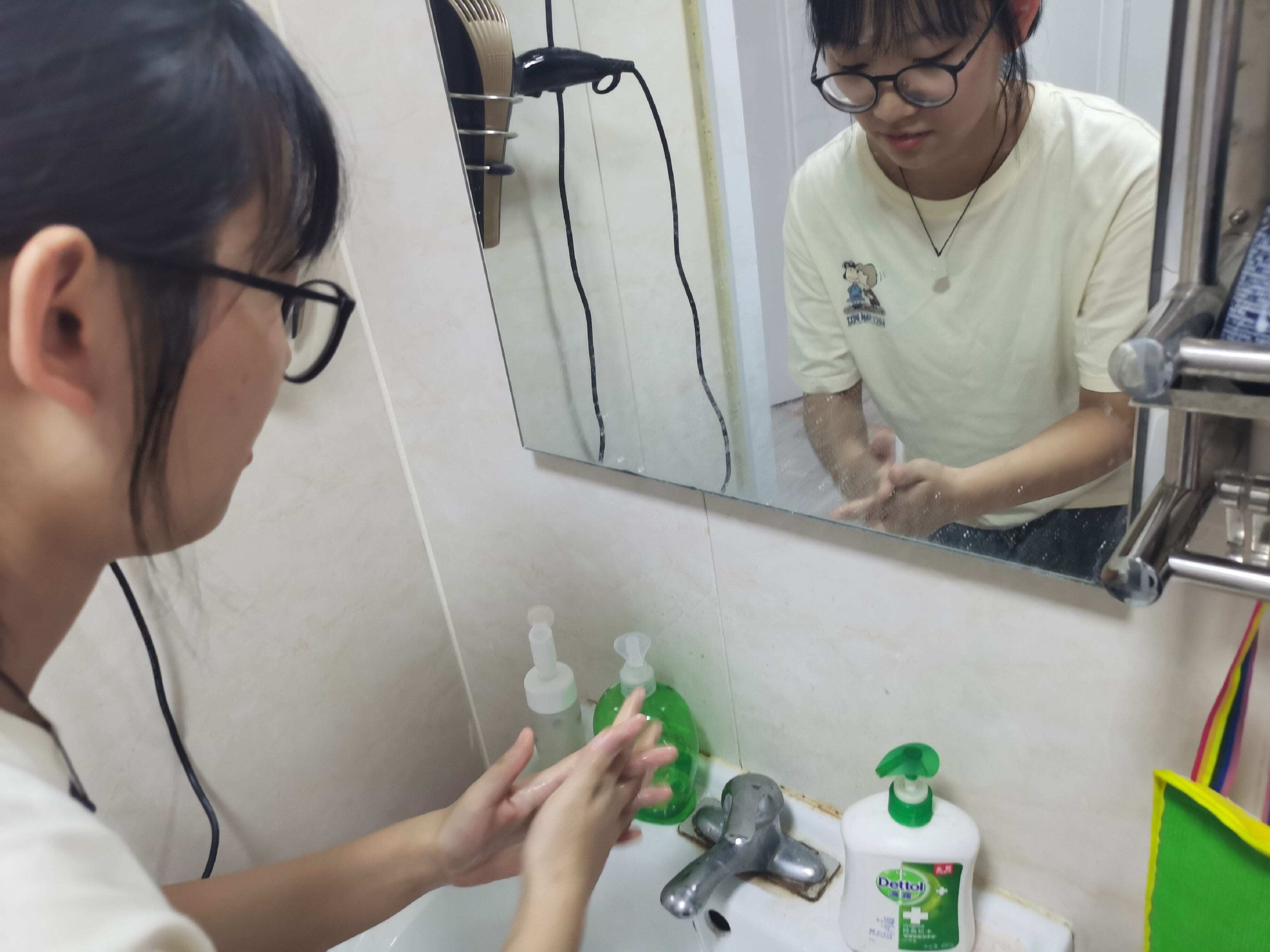 光有信心还不够,还需要科学的防疫知识作为支撑。实践队员们为实践点工作人员示范正确的洗手方式;小小的口罩大有讲究,队员们耐心地为工作人员们示范口罩的正确佩戴方式;同时,队员们呼吁实践点工作人员将防疫知识传播给家人朋友们,让防疫落到实处,把防疫知识宣传给更多人,为我国的疫情防控尽一份力。