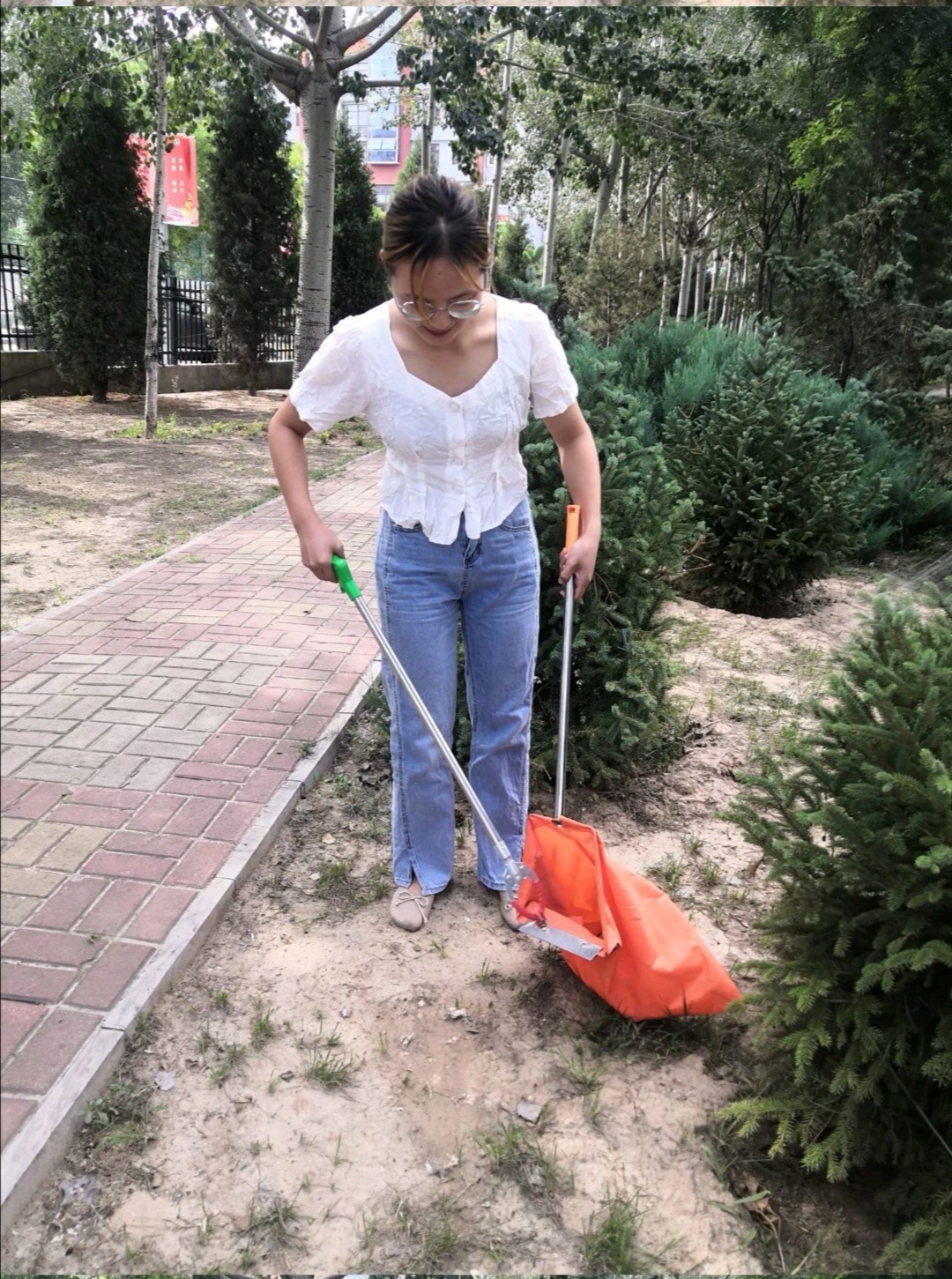 生活中,人们总是在不知不觉中就把垃圾扔到了地上,这些不和谐的“白色垃圾”污染着环境,也影响着人们的心情。为了保护大家共同的居住环境,实践队员们前往公园,认真的清扫公园的有害垃圾,还给大自然它本来的美丽。