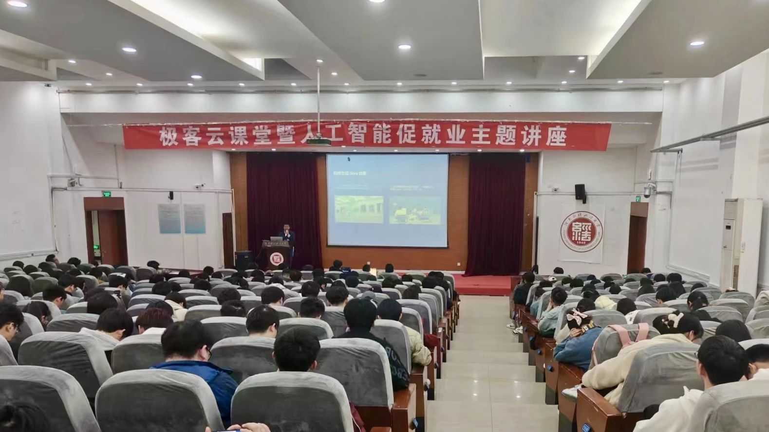 3月18日晚,我院联合中原龙子湖数字经济创业创新培育中心、中原科技城数字豫才开展极客云课堂暨人工智能促就业主题讲座,邀请微软(中国)的资深架构师谢亚力作主题为“拥抱人工智能、大学生的学习与就业新策略”的报告。讲座在教一220举行,由学院党委副书记张晓静主持,2021级部分学生参加此次讲座。