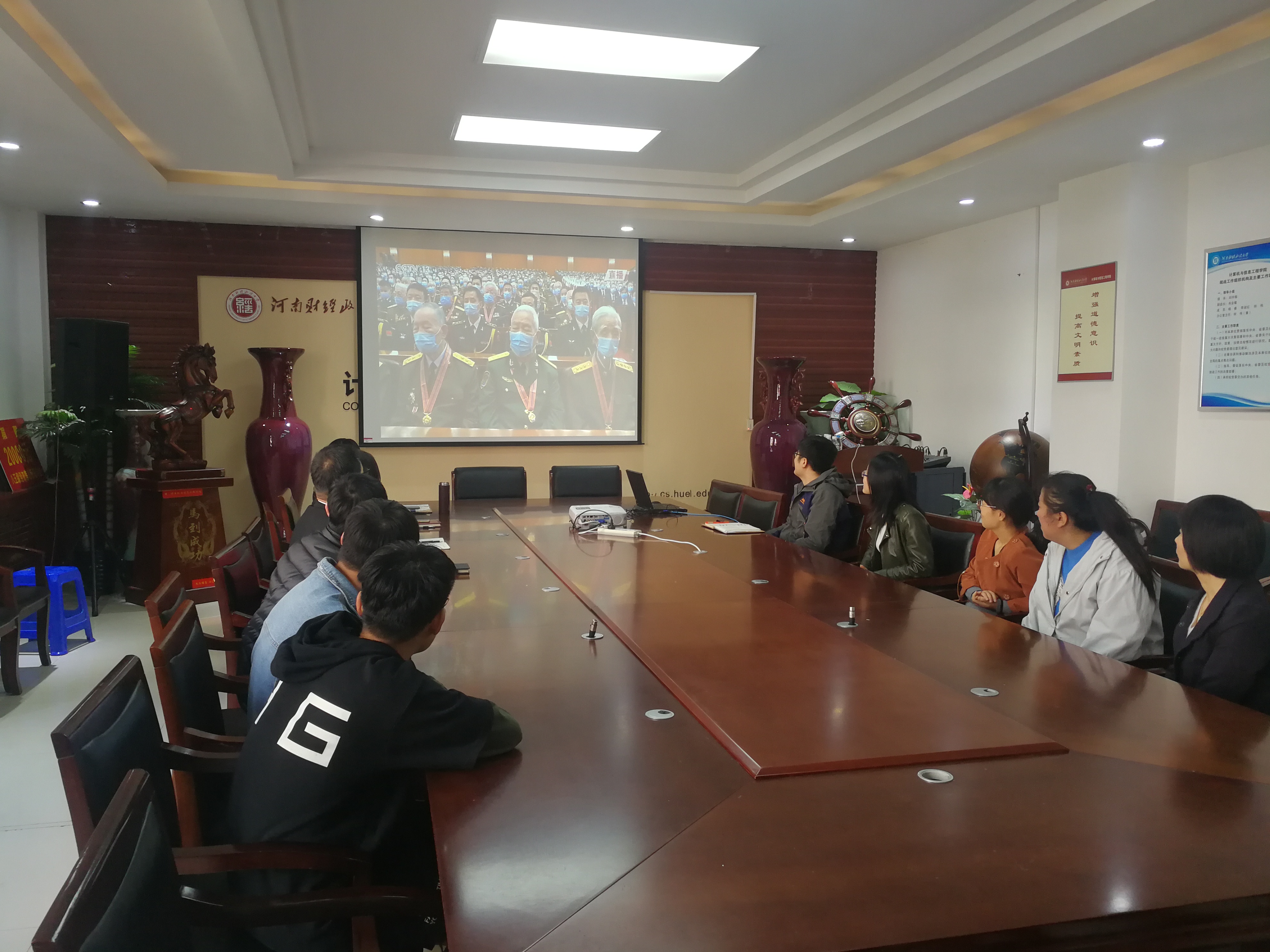 中国人民志愿军抗美援朝出国作战70周年大会于10月23日上午10时在北京人民大会堂隆重举行。学院分工会组织部分教职工在314会议室观看了大会直播,并展开讨论。